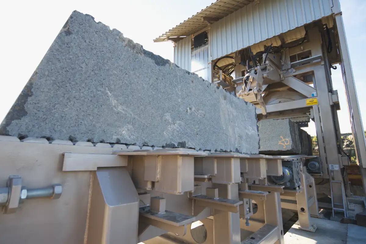 In addition to the regular processing of the quarried blocks for the purpose of splitting, they are used to process unused blocks that were originally quarried for cutting. Highly durable conveyors capable of moving heavy blocks and other additional equipment ensure smooth running of the line. Unique rotary manipulators allow easy rotation, twisting, shifting and sorting of finished products. Easy handling of large stone blocks contributes to greater performance.